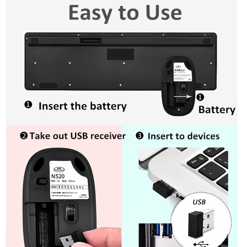 [SG Local] N520 Wireless Keyboard Mouse Combo Vintage Round Keycaps Mechanical Keyboard