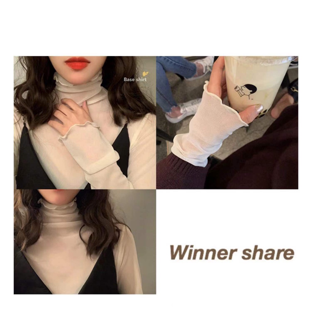 ☁️內搭王 透膚打底上衣 新款ins復古高領親膚內搭網紗上衣仙女長袖蕾絲打底衫女 女生上衣 韓國INS風