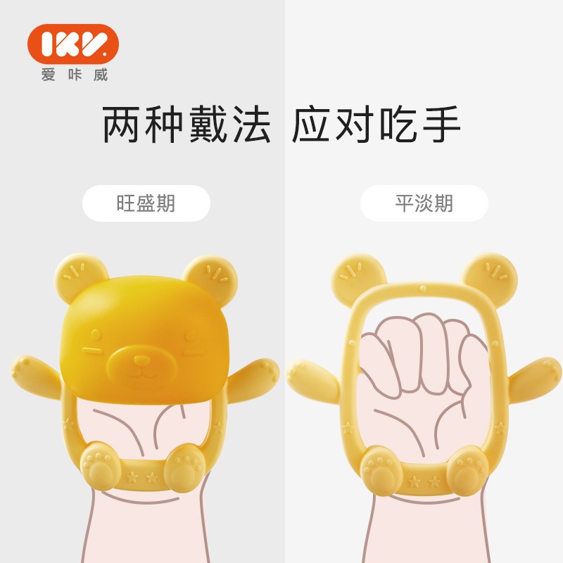 爱咔威\/IKV小熊护手牙胶婴儿 硅胶防吃手环神器宝宝咬胶玩具可水煮加收纳盒