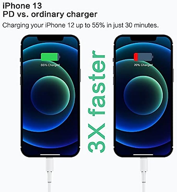 • ★【PD 3.0 High-Speed iPhone Charger】Fast charge for most USB-C iphone 13 or tablet including iPhone 13/13 Mini/13 Pro/12/12Pro/12 Pro Max/12 Mini/11/11 Pro/11 Pro Max/XS Max/XS/X/XR/8 Plus/8, iPad Pro/ iPad Air/ iPad, AirPods Pro. Standrad Charging Speed works with iPhone 7/7 Plus/6s/6s Plus/6/6 Plus/SE/5s/5/5c.