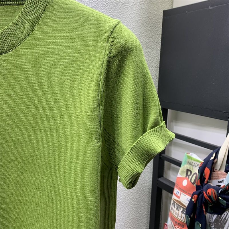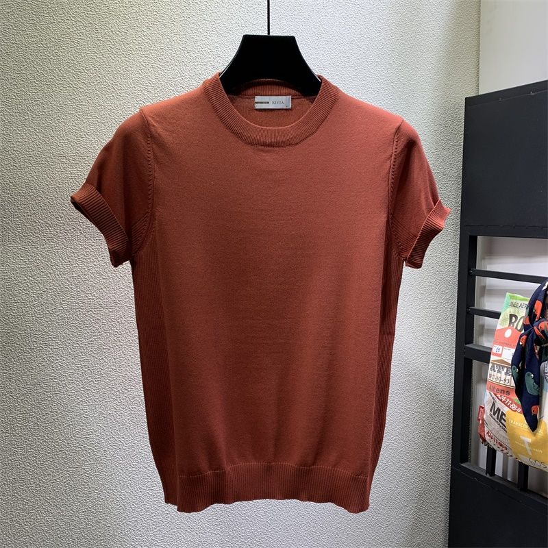 2023 summer round neck solid color ice silk short-sleeved T-shirt male Korean version slim fashion half-sleeved knitted