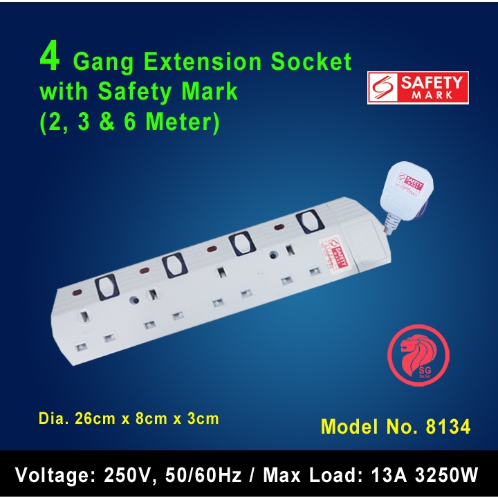 2/3/4/5/6 Gang Extension Socket with Singapore Safety Mark (2, 3 & 6 Meters)