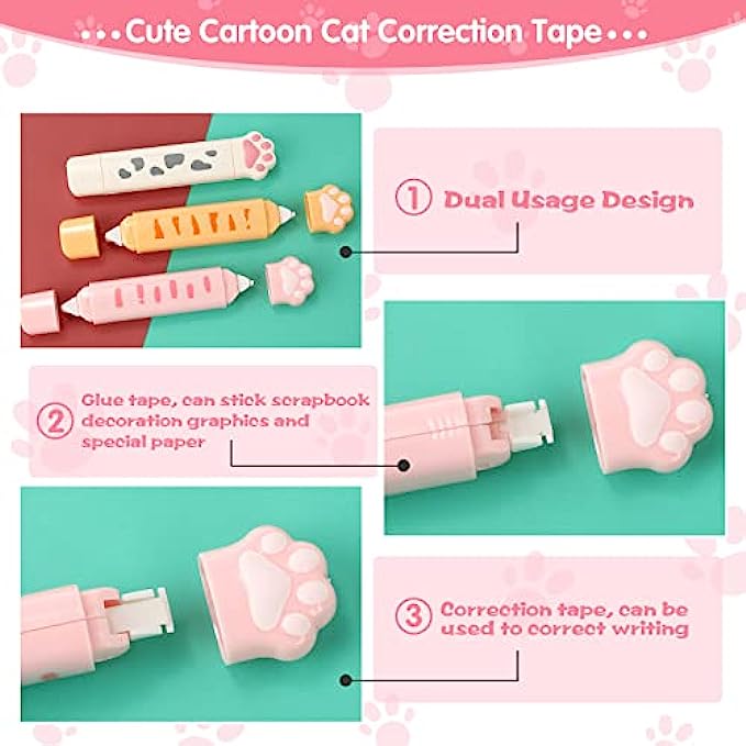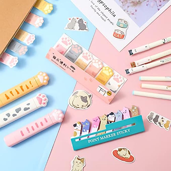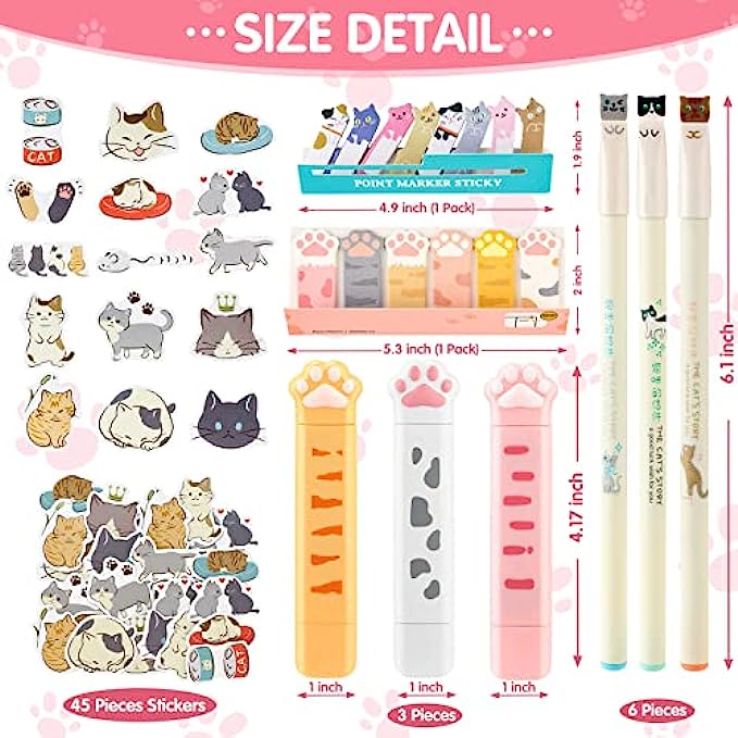 Package includes: you will get 3 pieces cartoon correction tapes, 2 pads cats sticky flags sets, a box of cat sticky note and 6 pieces of cat gel ink pens, sufficient quantity and nice combination can meet your various daily use, and you can share them with your classmates
