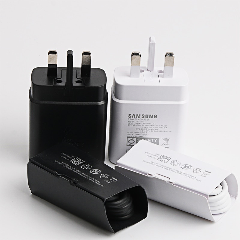 45W Samsung Super Fast Charger UK Plug Adapter Type C Cable for Samsung Galaxy A71 A80 A91 Note 10 20 S20 Plus S20 Ultra S21