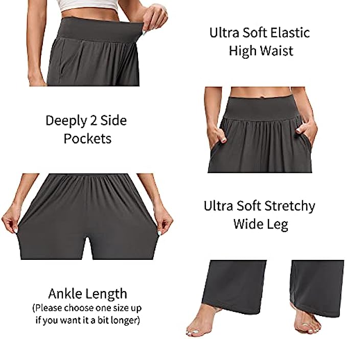 • ✅ ULTRA SOFT & LIGHTWEIGHT MATERIAL - The ASIMOON wide leg sweatpants women was made from 95% Polyester & 5% Spandex.The material has the same high spandex content that other womens loose yoga pants did and it's the perfect weight to not be see through but still light and breathable. These woman's comfy pants are buttery soft and have great stretch and movement. The loose fitting makes them really comfortable for using as high waisted lounge pants.