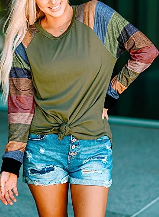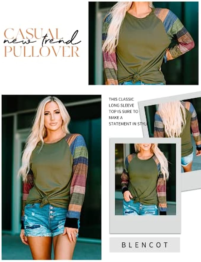 BLENCOT Women Lightweight Blouse Color Block Long Sleeve Loose Fit Tunics Shirts Tops