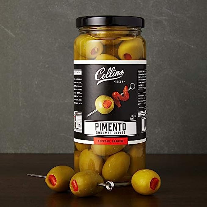 PREMIUM INGREDIENTS - Formulated with professional bartenders, Collins dirty martini mix is made with 100% real olive brine for that iconic dirty martini flavor. Our pimento cocktail olives are the perfect garnish for martinis, bloody marys and more.