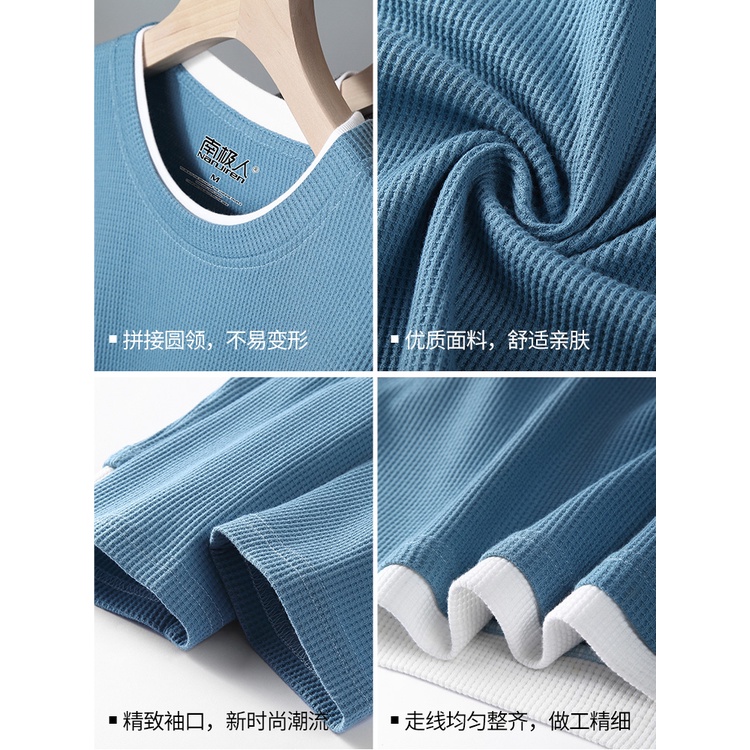 Cotton Long Sleeve Waffle Sweatshirt Men Round Neck Oversize Sweater Basic Model Fake Two-Piece Knit Long Sleeve Tshirt