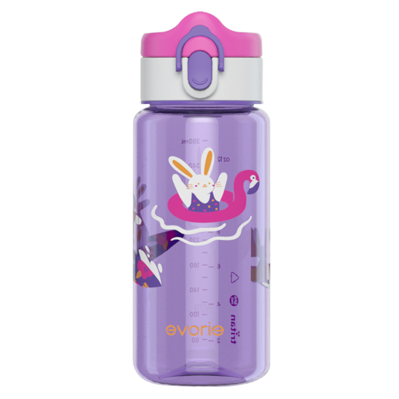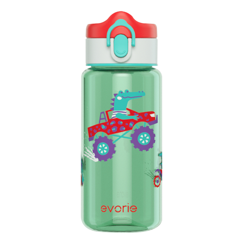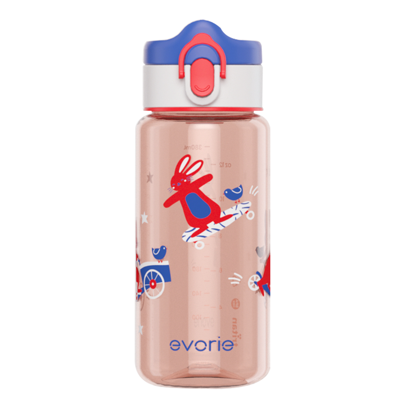 Evorie Tritan Kids Drinking Spout Water Bottle Mug flip cap with lock for 2 -8 yr old children, 380mL, BPA free