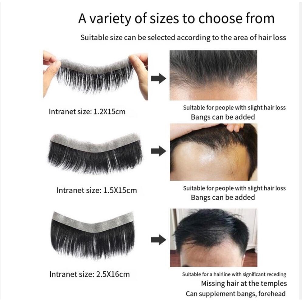 Hairline Wig Sticker Men s Forehead Wig Thin Liu Hai Invisible Real Hair Wig Male Supplement M Type Fake Liu Hai