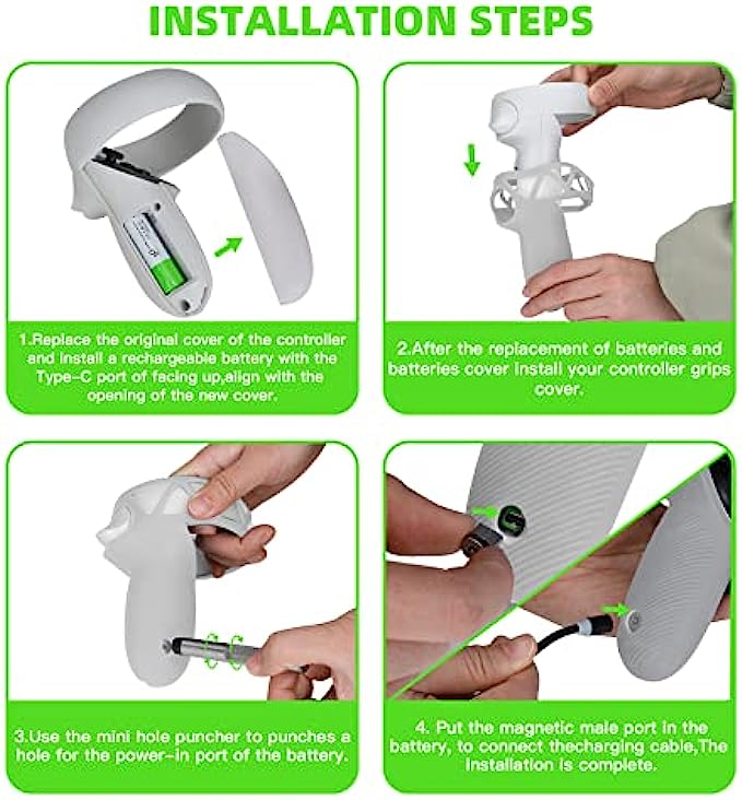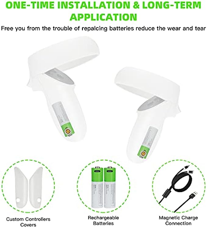 • ✿✿No Disassembly & Magnetic Charging: This Quest 2 controller charging kit is professionally designed with a not need to be disassembled battery cover and a magnetic charging connector, and is equipped with a continuously rechargeable battery. This design allows you to avoid repeated disassembly and replacement of the battery, reduce the wear and tear of the controller, make you more comfortable to use