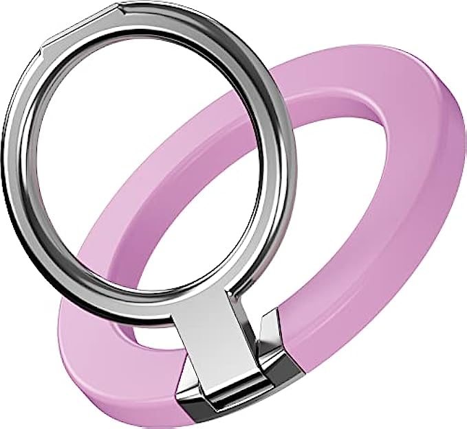 Jumaocun Magnetic Cell Phone Ring Finger Grip Holder Stand for iPhone 13 12 Pro Max MagSafe Smartphone Hand Accessories Adjustable Removable Wireless Charging Compatible with Most Mag Safe Case - Pink