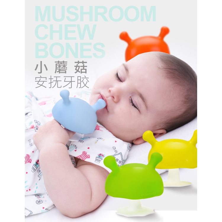 Mombella妈贝乐小蘑菇安抚牙胶 婴儿牙胶 宝宝防吃手磨牙硅胶玩具可水煮