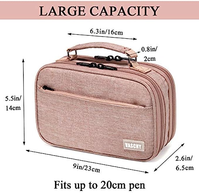 ✎EASY TO CARRY: The Vaschy double zipper pencil case is designed with a convenient top handle to carry. It is made of sturdy polyester, this case is built to last.It is lightweight yet durable and highly tear-resistant, making it a perfect material for making pen cases that will stand up well to regular use.