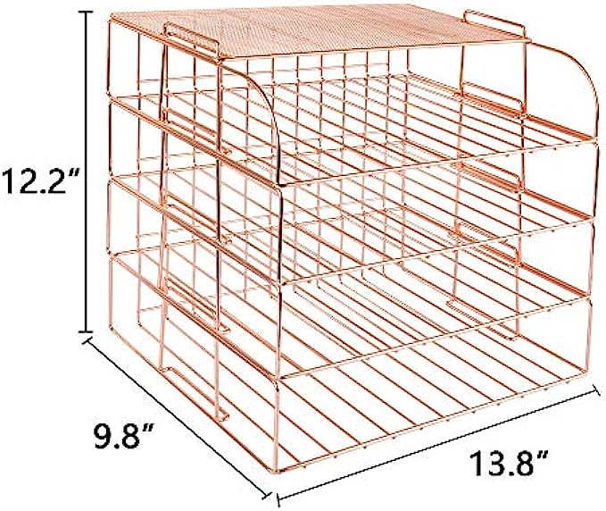 Spacrea Letter Tray, 4 Tier Rose Gold Desk Organizers and Accessories for Women, Stackable Paper Tray Organizer Desk File Organizer with 1 Upper Display Shelf (Rose Gold)
