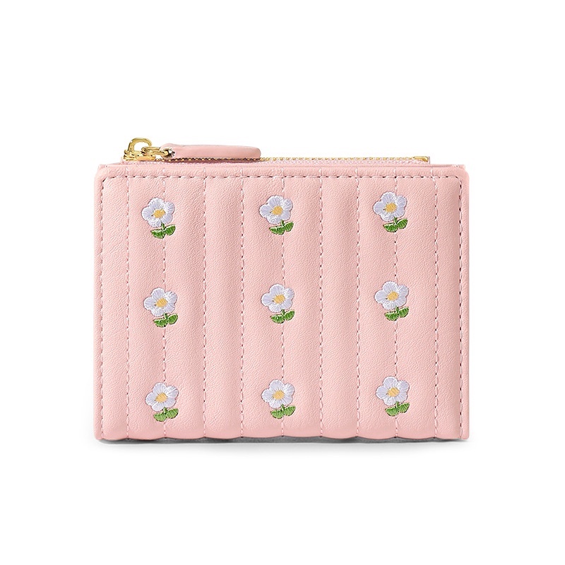 New Korean Version Embroidered Simple Cute Cropped Bifold Wallet For Woman
