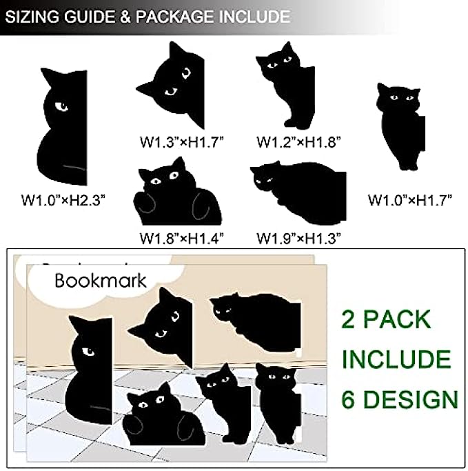 ?️Cute Bookmarks: You will receive 12 pieces of cute cat magnetic bookmarks in 6 different styles and sizes.