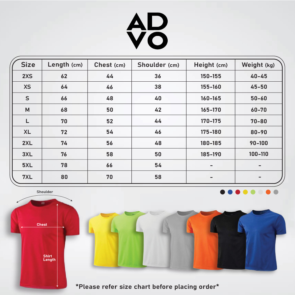 ADVO Microfiber T-Shirt Men Jersey Round Neck T shirt Short Sleeve Baju Jersi Lelaki Plain Unisex Quick Dry Baju Sukan
