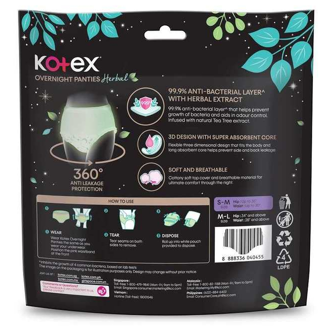 [CARTON DEAL]KOTEX Regular/Herbal Overnight Panties Sleepwell 360° AntiLeakage Protection(2pcs/pk) Panty Sanitary Pad