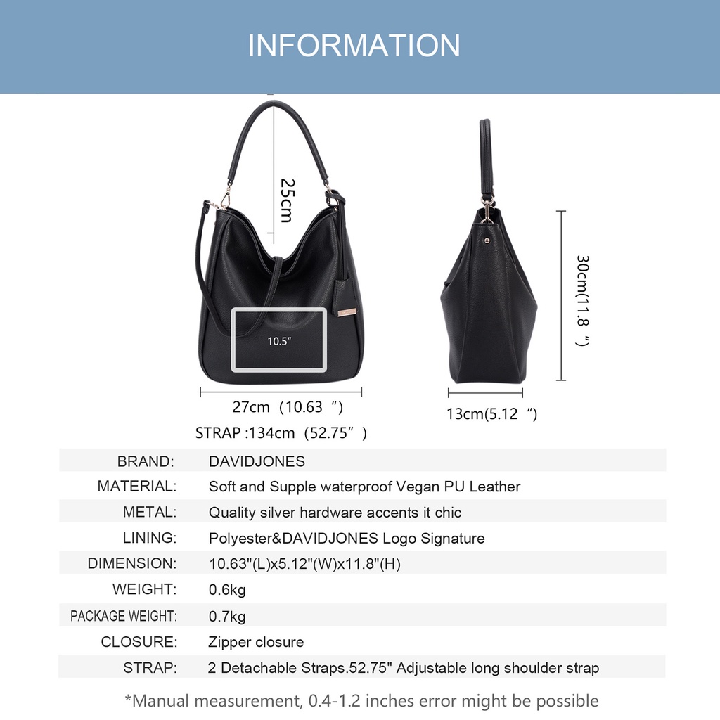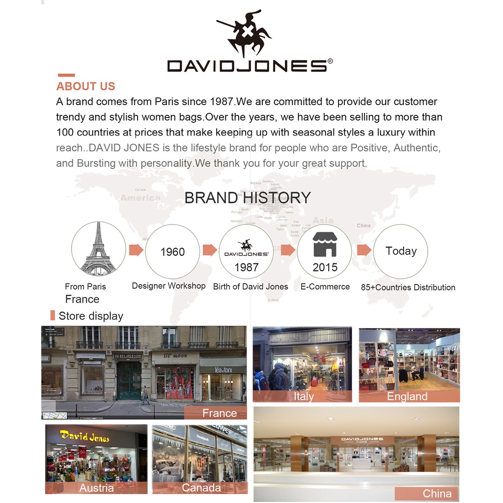 David jones Paris for women handbag pu leather