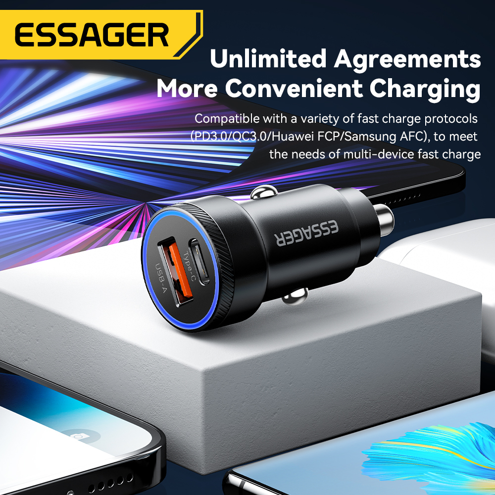 Essager 80W Car Charger USB Type C PD Fast Charging Phone Quick Charge for iP 14 13 Samsung