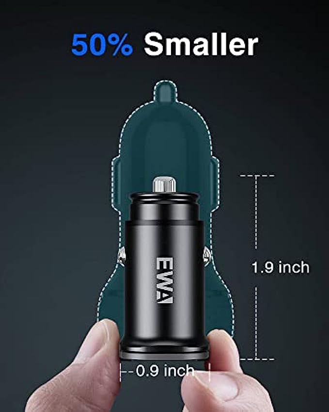 EWA USB C Car Charger, 40W(20W+20W) Dual PD Port Smallest iPhone 13 Car Charger, All Metal Car Charger Adapter, Fast Charging Compatible with iPhone 13/12/Pro/Pro Max/Mini/MagSafe, Galaxy S20/S10