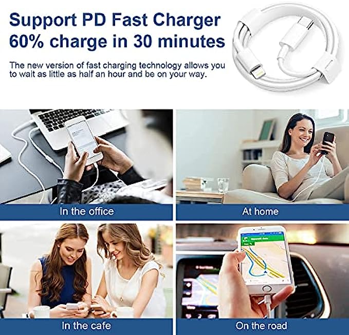【Safety Efficient Fast Charging 】The Power Delivery Wall Charger for iPhone owns a built-in multi-protection system, avoiding over-voltage,over-charge,over-heat,etc.The smart chip including the MFi certified lightning cable match the current required by the Apple device automatically,charges your iPhone/iPad device fast,safely,and steadily.Tangle-free 6 Feet length is convenient for usage while charging and sync at home/office/travel in bed,hotel rooms, and more.