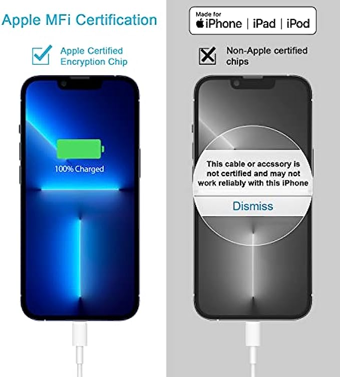 ⚡【Original Apple MFi Certified Accessories】With the Original Apple MFi Certified chip,the USB C to Lightning cord supports iOS versions including all future updates.Also the USB-C PD adapter and Type-C to Lightning Cable will perfectly protect both your iphone/ipad devices also the brick/ cord against overheating, excessive current, short-circuit and overcharging.Apple MFi licensed iPhone charging cable promises no warning message pops up. Ensures fast charging and you could connect your MacBook/Pro with iPhone/iPad/iPod directly and get the 480 Mbps sync data transfer speed!