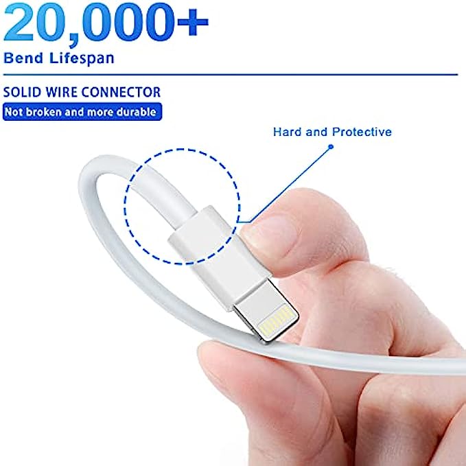 • Superior Durable iPhone Cable:20X more durable and sturdier than original iPhone charging cables - Our iPhone USB cable are made of military grade material and space aluminium alloy, withstand at least 20,000 plugging and unplugging lifespan and 20,000 bending cycles. Flexible and tangle-free, meet all kinds of daily connection needs and long-term use.