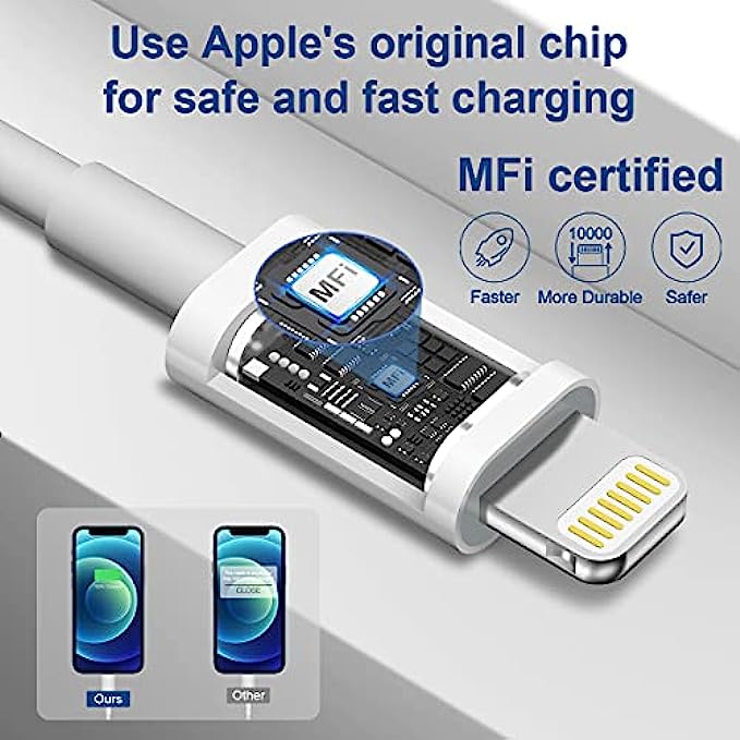• 【Apple MFi Certified Lightning Cable】 With the Apple MFi Chip, the USB-C to lightning cable cord equips automatic chip recognition function. The Apple MFi Certification ensures 100% flawless compatibility with Apple devices. No more trigger warning messages.