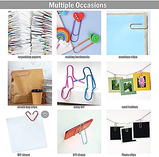 • 【Widely application】These colored clips ideal for DIY ,organizing papers, documents, brochures, business cards, recipes, photo album clips, business card holders and envelope clipsand more.