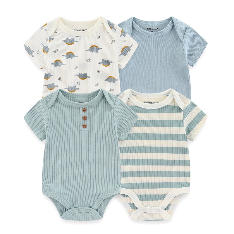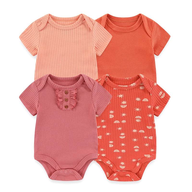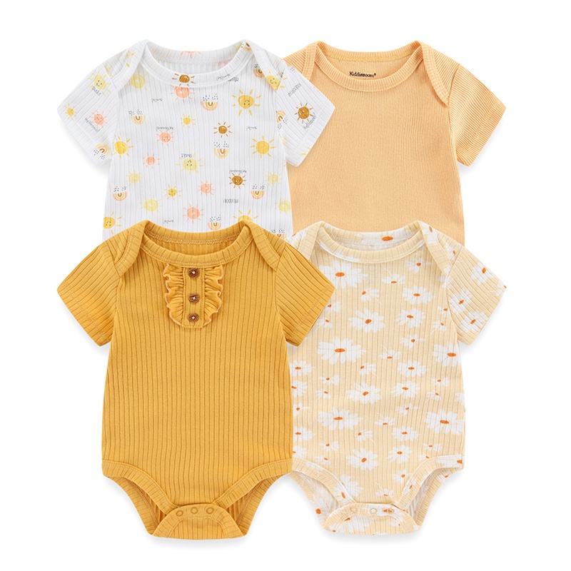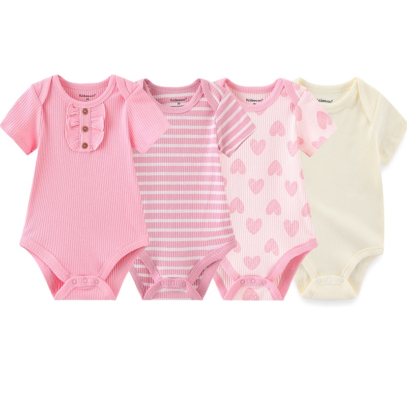 Kiddiezoom 4Pieces Summer Cartoon Newborn Baby Girl Bodysuits Soft Baby Clothing