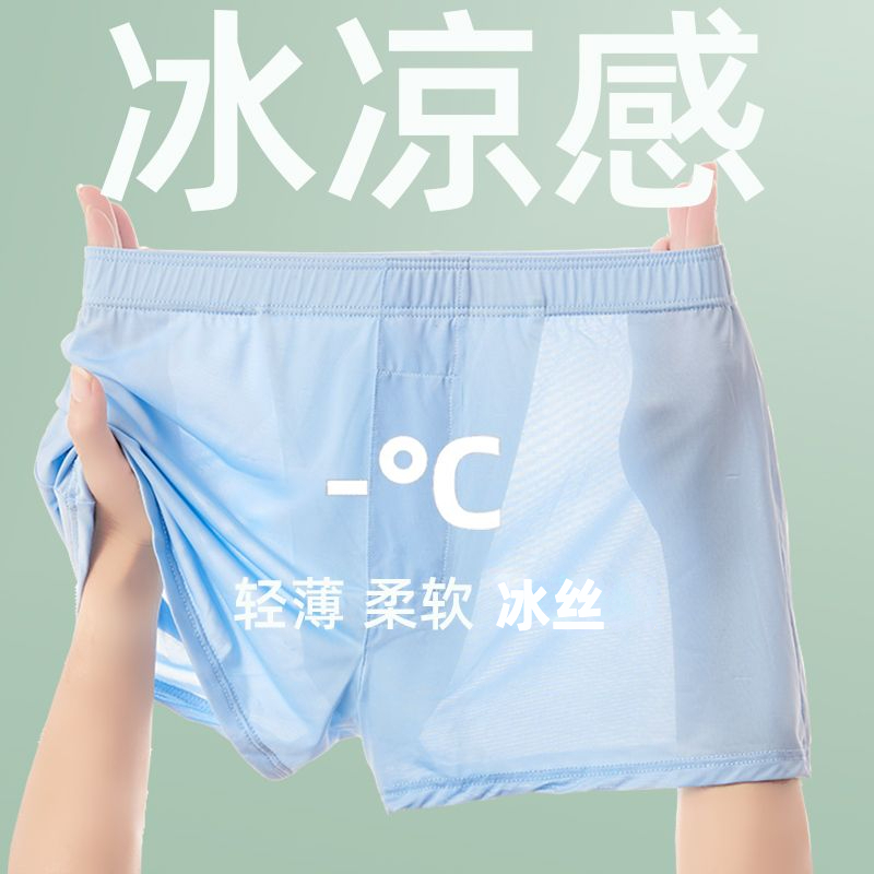 4 PCS Ice Silk Men Boxer Shorts Graphene Men's Underpants Comfortable And Breathable Ultrathin Shorts Trout