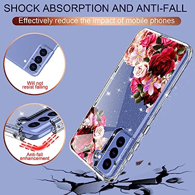 KJSK Case for Samsung S21 Fe,Heavy Duty Impact Resistant Floral PC Back Case + Sturdy TPU Cover and Front Cover Full Body Protective Cover for Samsung Galaxy S21 Fe 5G 2022
