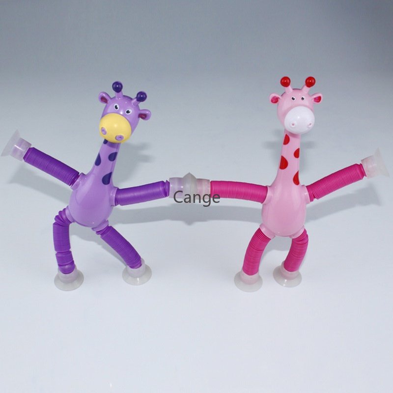 LED Telescopic Suction Cup Giraffe Toy Cartoon Puzzle Suction Cup Parent-Child Interactive Decompression Toy Stress Relief