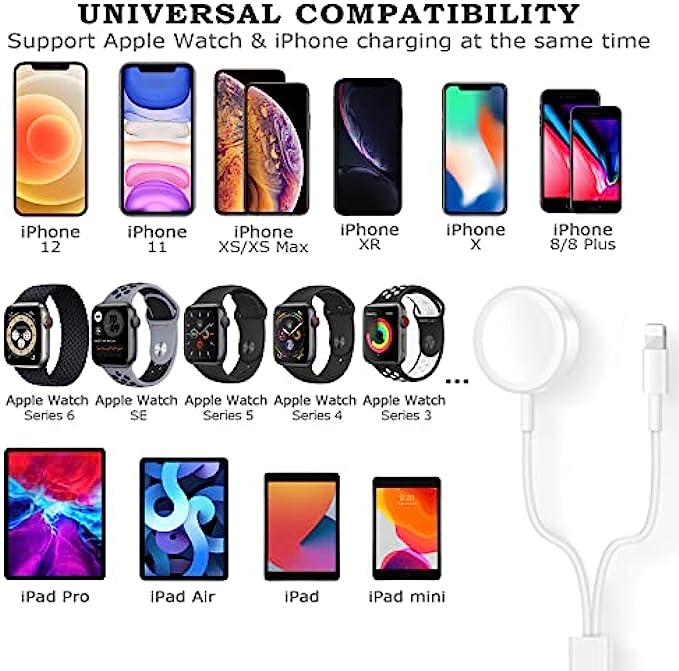 • ❤Convenient and Easy:The phone and watch charger is convenient to charge Watch&Phone at the same time. To get better experience, we would like you to take off the iwatch case and use the recommended adapter(5V 1.5A).