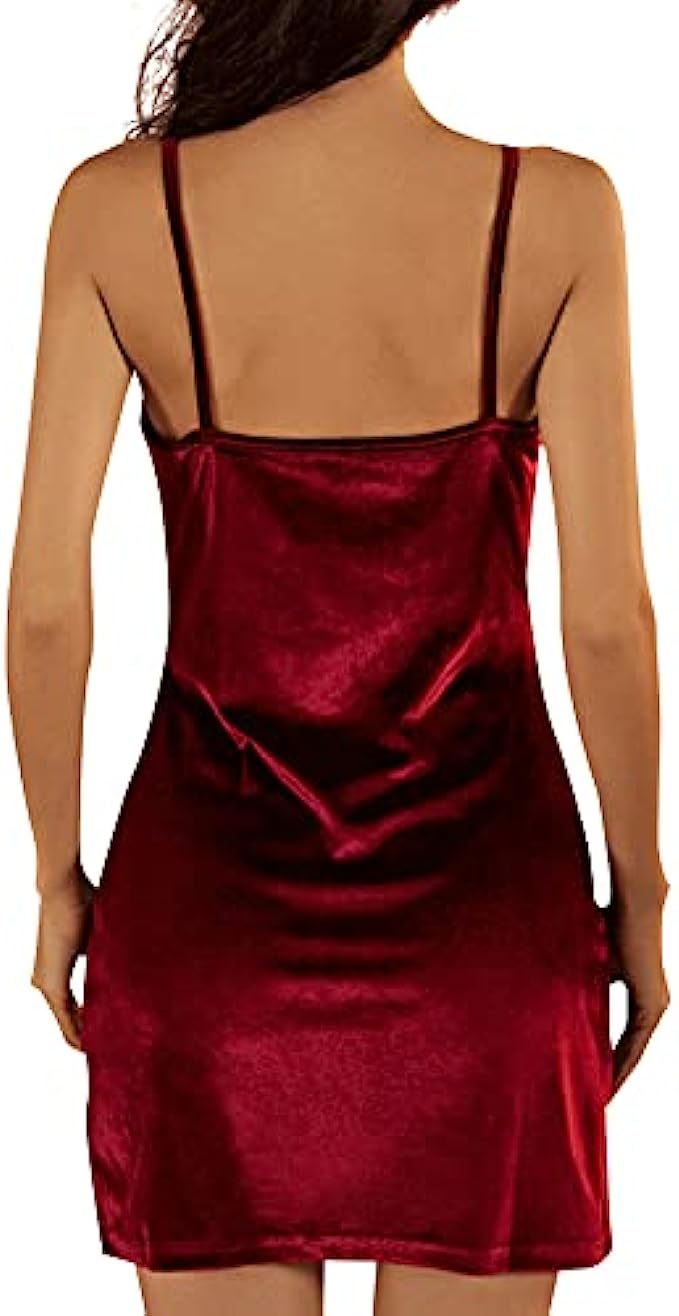 • Velvet, lace trim lingerie, chemise sleepwear, sleeveless, strappy cami nightdress, helping you to show your beautiful lines.