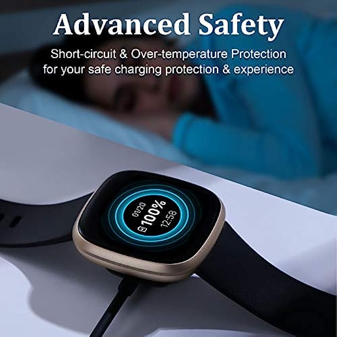 • Our Versa 3/Sense smart watch charger is reliable on advanced safety. Built with over-current, over-voltage, short-circuit and over-temperature protection. Using high quality technology and material to offer you safe charging protection and experience