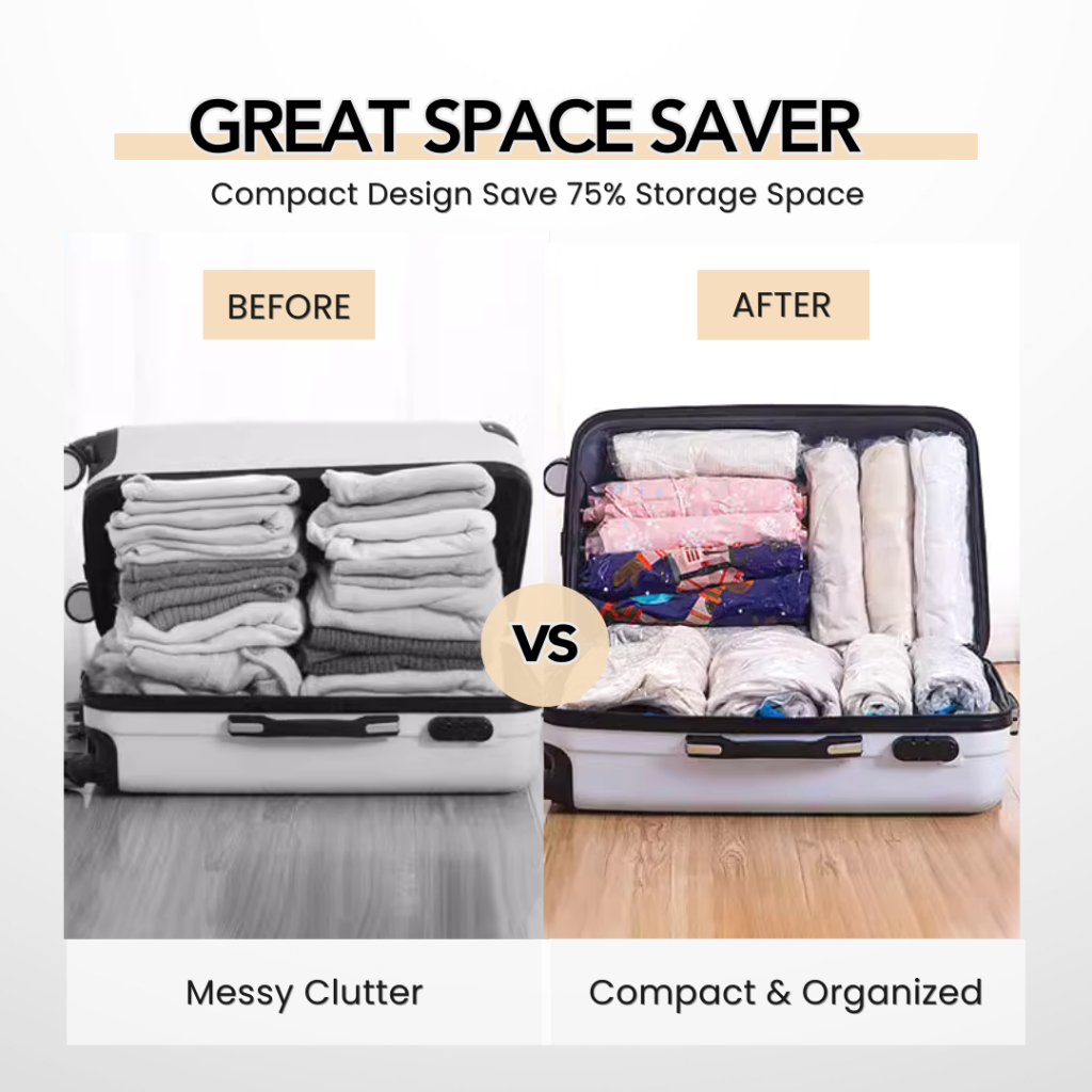 mixshop Hand Roll Travel Vacuum Bag, Household Storage, Compression, Organizer [SG READY STOCK]