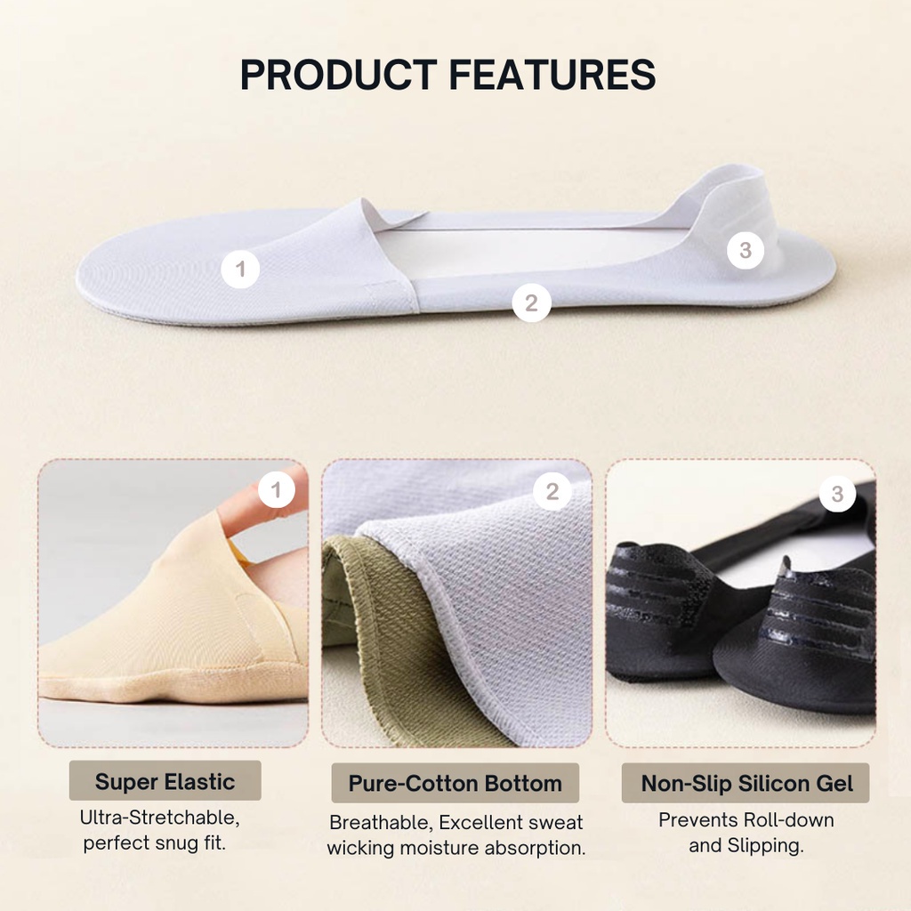 mixshop 3 Pairs Invisible Socks Ladies, Non-slip No Show Socks, SG ready stock.