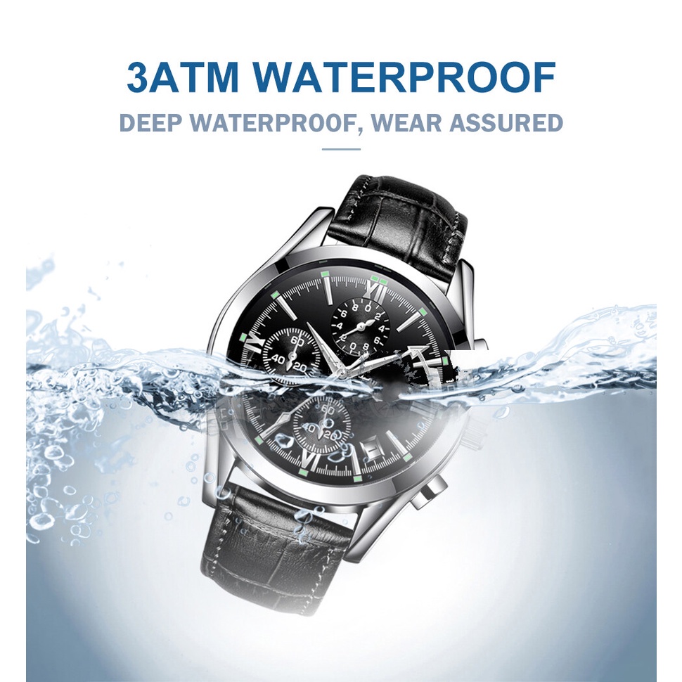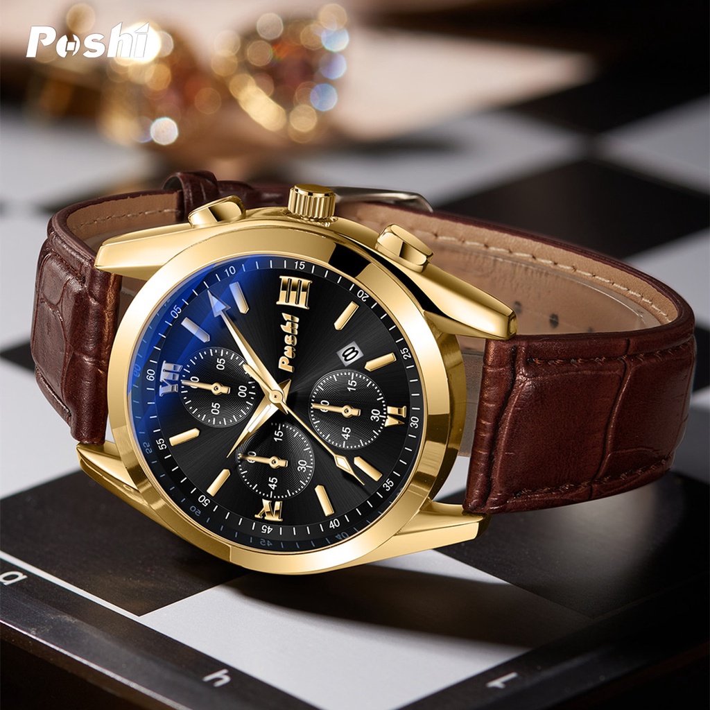 POSHI Men's Watch Leather Business Sport Waterproof Quartz Analog Watch jam tangan lelaki with box man's