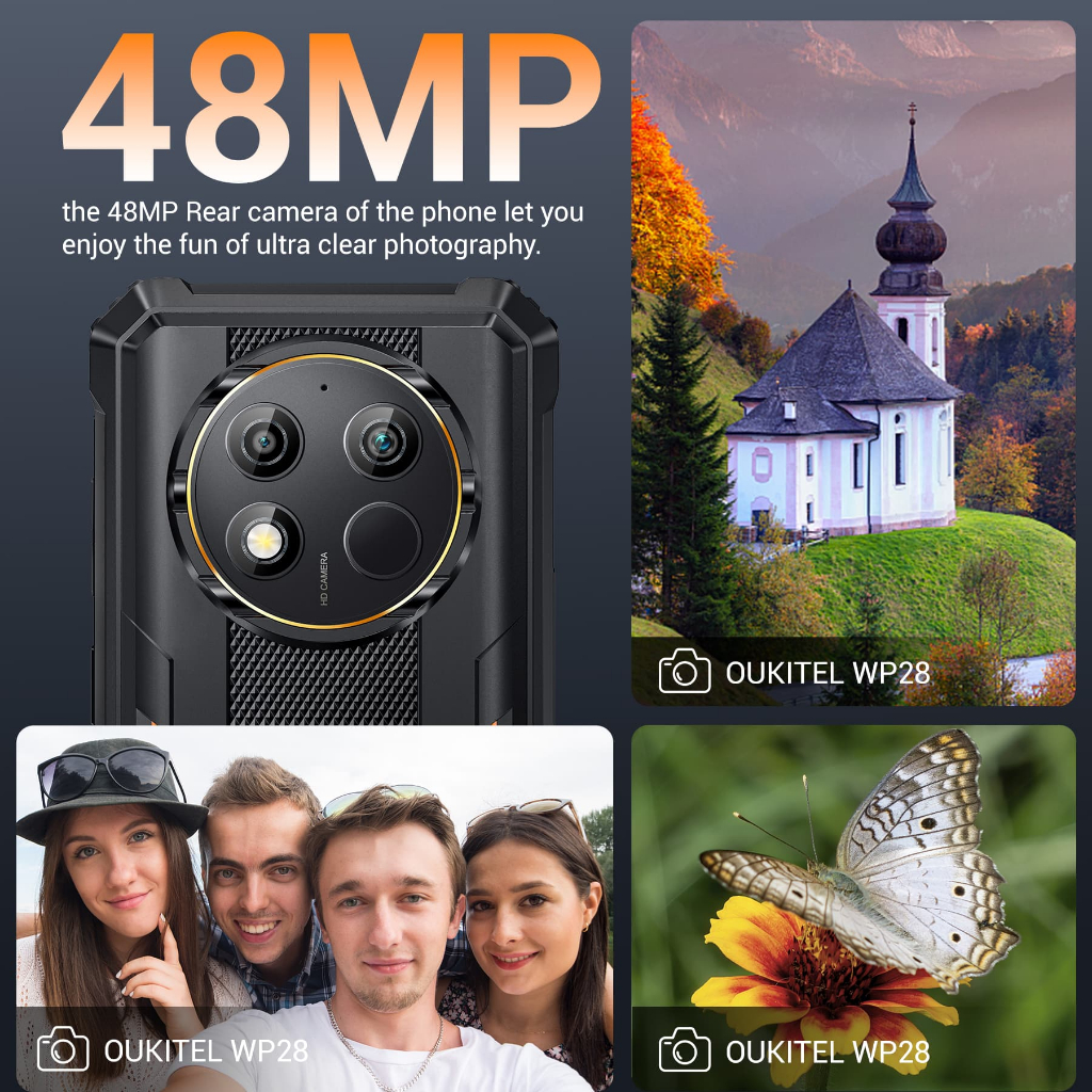 Oukitel WP28 Rugged Smartphone 6.52‘' HD+ 10600mAh 15GB+256GB Android13 Mobile Phone 48MP Camera Cell Phone