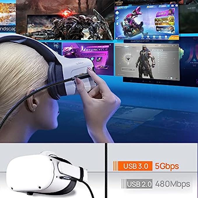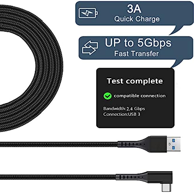 【Compatible with Oculus Quest 2】Our VR Oculus Link Cable connects Oculus Quest 2 to a gaming PC so that you can play all Oculus Rift apps and Steam VR games.Our USB C cable also can compatible with usb 3.0/3.1 gen1.