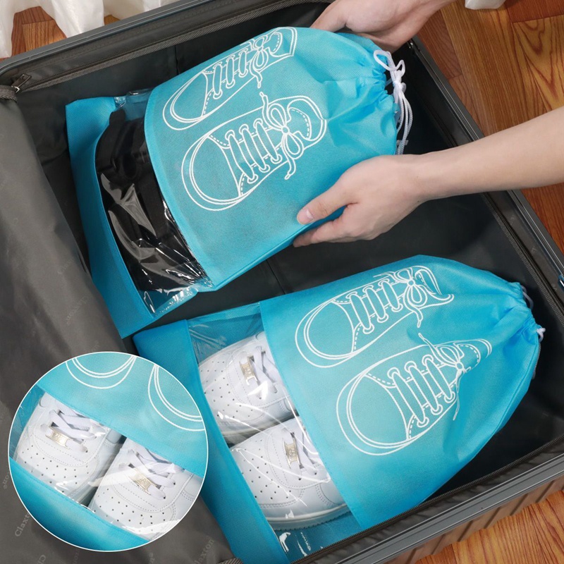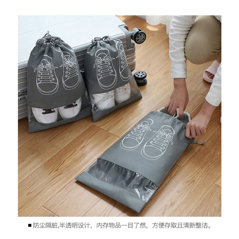[Ready Stock][Gift with purchase] Non-woven Shoes Bag Portable Tote Drawstring Bag For Shoes Waterproof Dustproof Travel Bag