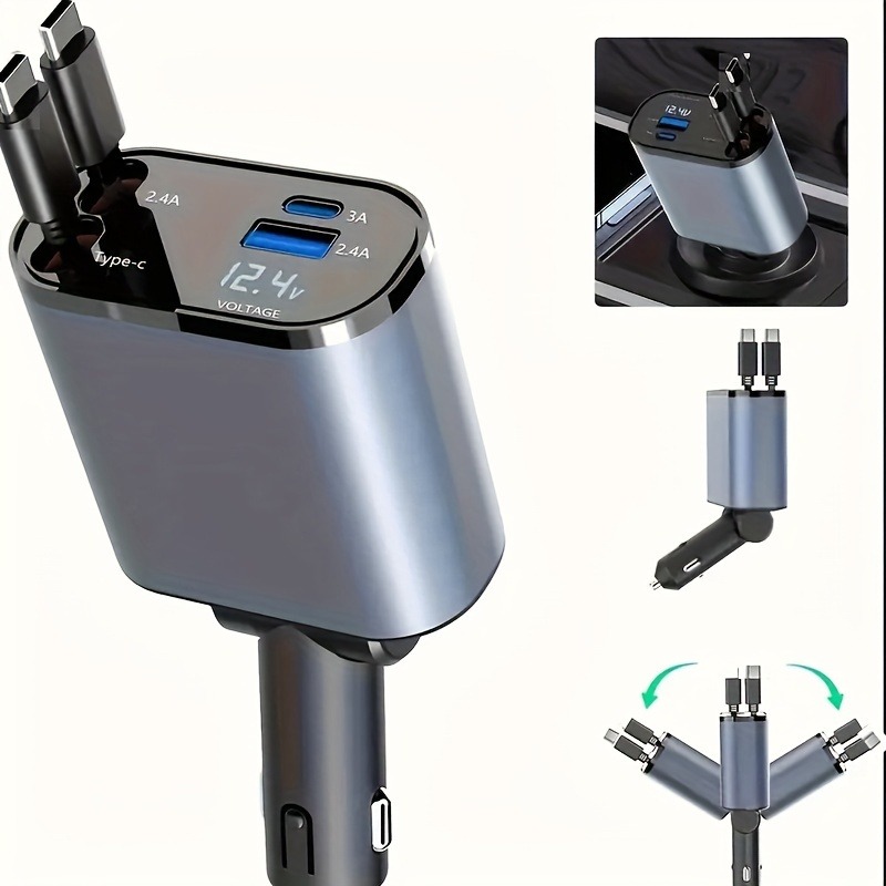 Retractable Car Charger, 4-in-1 Fast Car Phone Charger, Retractable Cable And 2 USB Ports Car Charger Adapter For Android Phones, Auto Accessories Interior