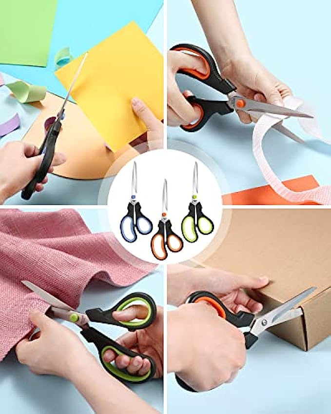 ALL Purpose - 3 color scissors are ideal for a wide variety of day-to-day uses in and home/office/school/teacher supplies. they would stand out as compared to the black handled ones, Different colors for different areas, they will not get mixed up. Making some of the little things in everyday life easier!