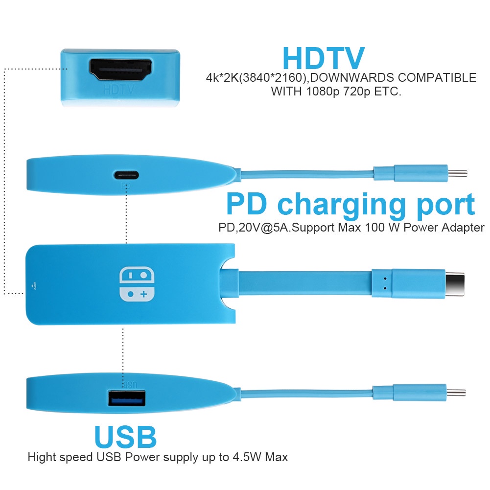 PD100W Docking Station For Nintendo Switch,Portable Switch Dock Replacement For Nintendo Switch Dock Switch HDMI Adapter USB 3.0 Switch TV Dock,for Nintendo Switch Travel Dock,for