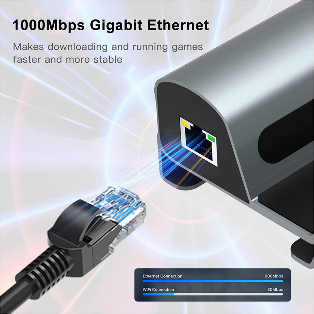 Steam Deck Dock 6-in-1 Steam Deck ROG Ally Docking Station with HDMI 2.0 4k@60Hz, Gigabit Ethernet, 3xUSB 3.0 and USB-C