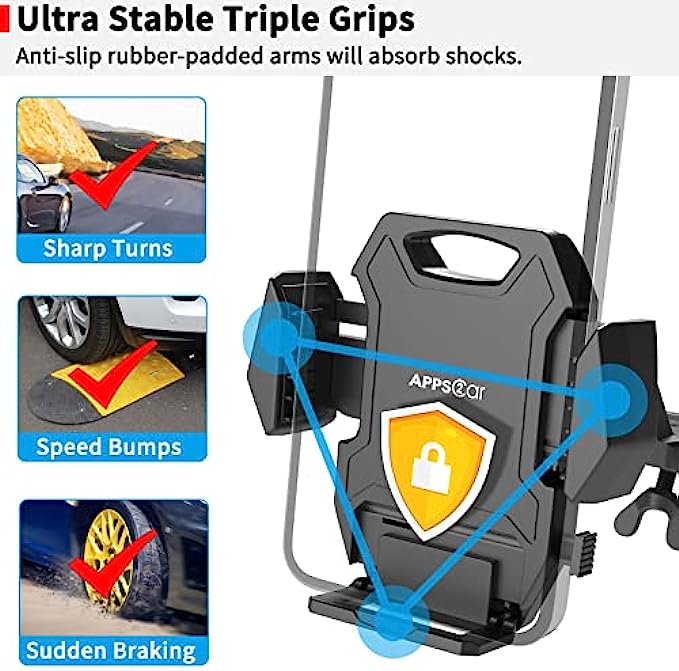 【Advanced Protection & Sturdy Mount】With 3 sides grip: collapsible bottom and two adjustable arms with silicon pad, it holds cell phone tightly. Screw-Locked base design, much securer than the air vent mount, suction cup dashboard windshiled mount. No interference with playing CDs. 【Optimal Viewing for Safe Driving】 Innovative flexible ballhead joint construction allows you to adjust to the car cell phone mount in 360 degrees, CD slot mounting solution clearing up the car's windshield, and it won't block your view of the road. 【One-Handed Operation】One press release design, simple installation and removal of smart phones with only one hand. Play a good role in car, enjoy hands-free driving. 【Broad Compatibility】Adjustable extension arm design is suitable for all iPhone & Andriod Cell Phone although with a case, like iPhone 13 Pro Max/13 Pro/13/13 Mini/12 Pro Max/12 Pro/12/12 Mini/11/11 Pro/11 Pro max/ XS Max XR X 8 Plus 7 6S 6 5S SE, Samsung Galaxy S22 Ultra S22+ S22 S21+ S21 S20 S20+ S10 S10+ S10e S9 S9+ S8 S8+ S7 S6, Note 20 Ultra 20 10 9 8 6 5, A91 A90 A80 A72 A71 A70 A60 A52 A51 A50 A42 A41 A40 A30 A32 A31 A22 A21 A20 A12 A11 A10 A02 A01, Pixel 6Pro 6 5a 5 4XL 4 3XL 3 2, etc. 【BFF for Drivers】A must have gift for drivers, friend and family, enjoy Hands-free road trip, spend more time at the wheel and eyes on the road. Collapsible hole base allows charging while holding your phone, good for long time road trip.