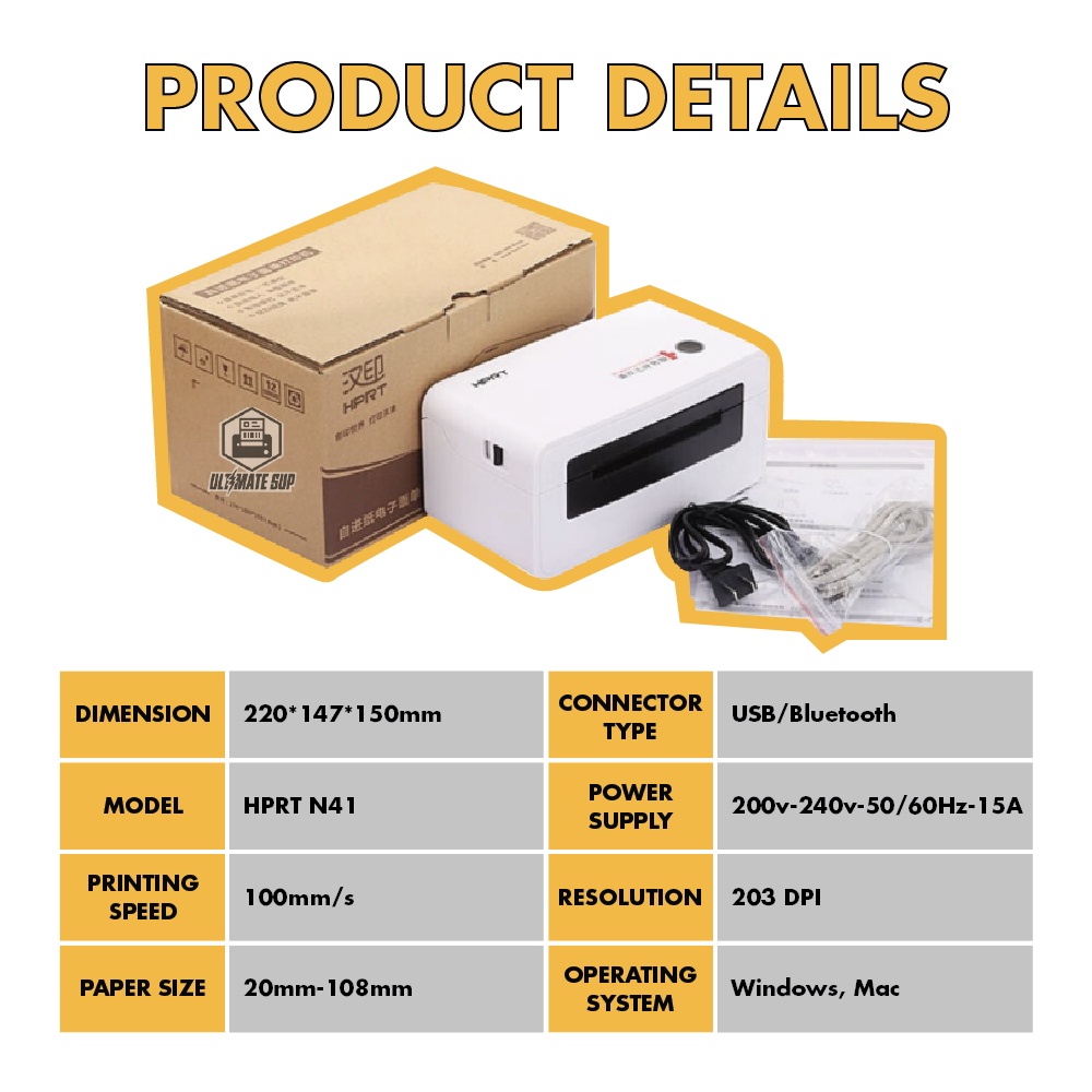 Thermal Printer HPRT N41 Label | Barcode Printer with Bluetooth & USB - Ultimate Supply